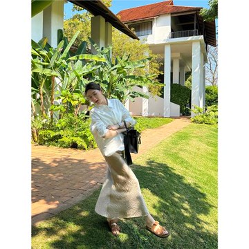 YANGLE_醋酸半身裙女2025年春秋季新款休閑減齡顯瘦開叉半裙垂感
