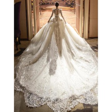 點我下載《清倉特價》長袖主婚紗新娘高級法式復古結婚拖尾冬[買到就是賺]