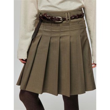 點我下載Simple Project 暗條紋tr面料寬腰頭毛邊低腰百褶裙A字半身裙