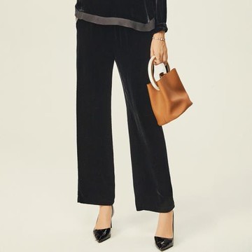 恩納斯真絲絲絨褲子女2025新款簡約純色百搭顯瘦桑蠶絲闊腿褲
