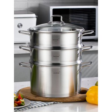 304不銹鋼定時蒸鍋家用大容量多層復合底加厚蒸鍋電磁爐煤氣專用