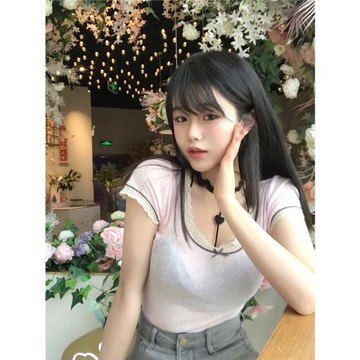 又純又欲蕾絲短袖T恤女 夏季蝴蝶結純欲系純欲風性感青春通勤上衣