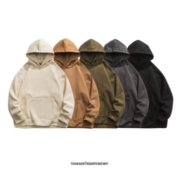 toughleaf(麂皮+銀狐絨)600g重磅加絨日系復古寬松情侶連帽衛衣男