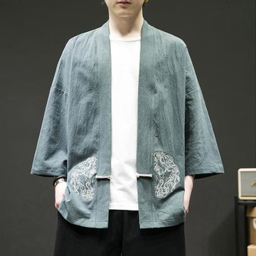 唐裝漢服男改良棉麻外套中式古風盤扣刺繡開衫男士大碼中國風道袍