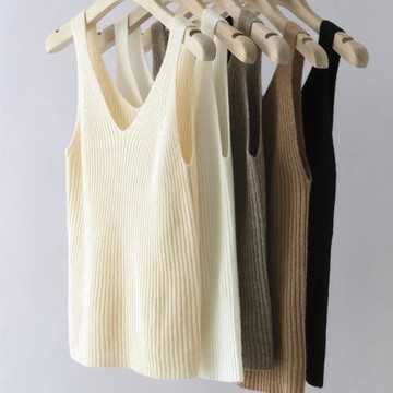 春秋冬山羊絨針織吊帶背心女V領修身顯瘦無袖打底小內搭簡約百搭