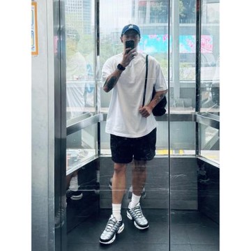 男生短袖t恤夏季薄款寬松五分袖上衣港風潮流百搭體恤衫男裝上衣