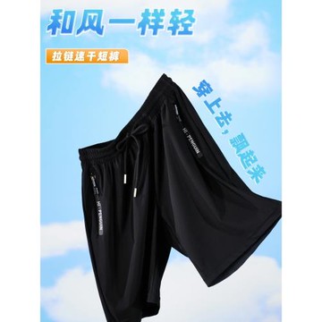 舒服到起飛!黑科技涼感冰度速干褲拉鏈情侶運動高彈休閑五分褲潮
