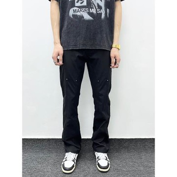 美式潮牌vibe鉚釘紐扣黑色修身直筒休閑褲男女顯瘦薄款長褲子夏季