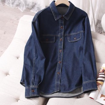 2024春裝新款時尚休閑純棉牛仔襯衫女百搭顯瘦加絨保暖牛仔襯衣潮