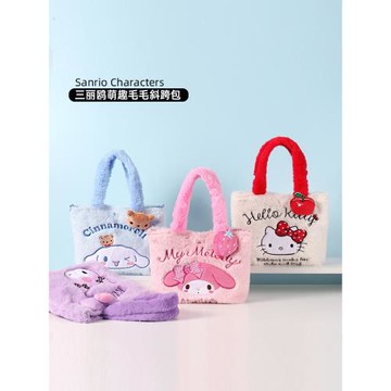 三麗鷗毛毛手提斜跨包可愛萌玉桂狗美樂蒂毛絨收納斜挎小包包可愛