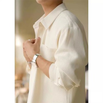 春秋高級感痞帥華夫格長袖襯衫男夏潮流防曬襯衣高端帥氣大碼外套