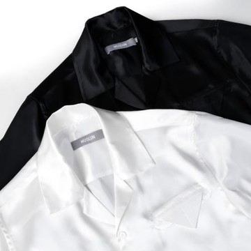 MUSLUN設計師品牌進口醋酸緞滑感亮光古巴領短袖襯衣