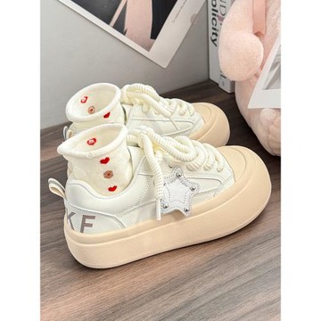 日系丑萌大頭厚底鞋小眾設計感2026新款星星小白鞋奶呼呼面包板鞋