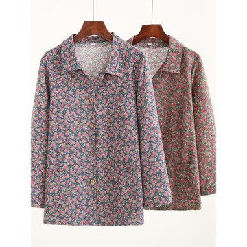 老年女裝奶奶裝春秋長袖襯衫老太婆碎花開衫上衣媽媽秋裝薄款外套