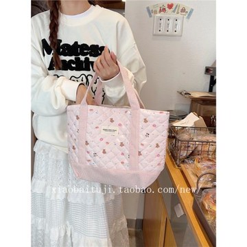 小白兔幾 可愛手提包女2023媽咪便當包大容量絎縫夾棉手提通勤包