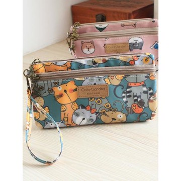 可愛貓咪狗狗小熊韓國進口牛津布 防水雙層拉鏈手機包女孩零錢包