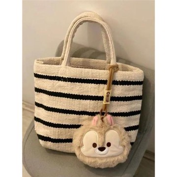 韓系ins西高地條紋泡泡單肩包新款大容量卡通貓狗學院風手提托特