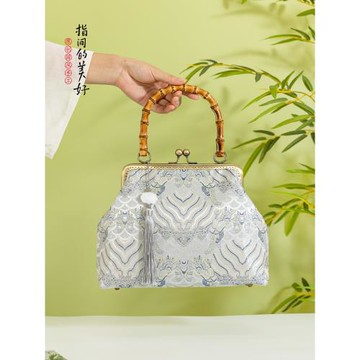 絲綢織錦真竹節包包復古風國風送媽媽民國斜跨新中式手提女包