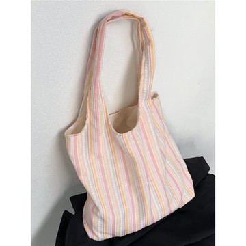 日韓系多巴胺條紋帆布包背心包大容量腋下包夏天仙女學生上課手包