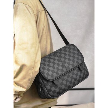 2025新款格子機車包單肩包 韓版男包休閑時尚斜挎包潮流背包潮包