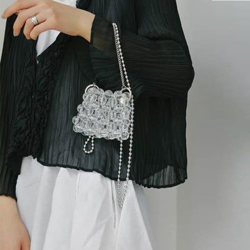 小眾設計迷你珍珠鏈條斜跨透明小包包新款自制diy串珠材料包禮物