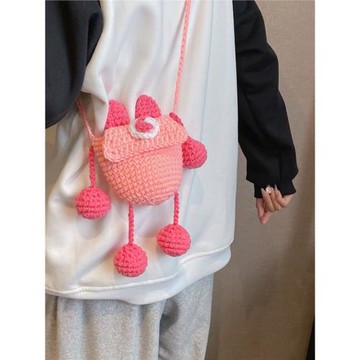 針織毛線包包成品女斜挎2025新款可愛搞怪兒童網紅女童包包