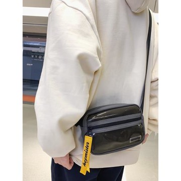 ins潮牌個性斜挎包pvc半透明日系單肩包撞色男士百搭防水手機包女