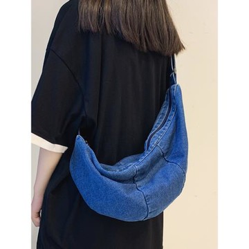 運動餃子包女2025新款潮大容量單肩包男百搭上課通勤牛仔布斜挎包