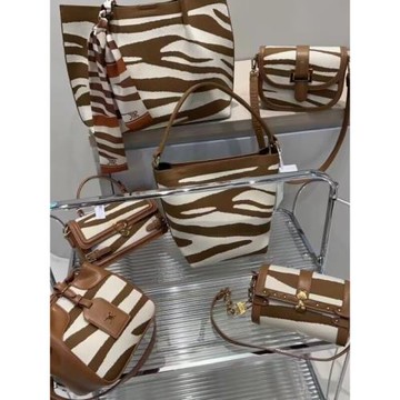 新款撞色高檔飛織布拼皮單肩包腋下托特子母包水桶包斑馬紋女包
