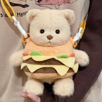 可愛漢堡包小熊雙肩包卡通玩偶斜挎包毛絨公仔多用小背包女禮物