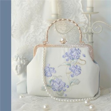 神隱手作原創國風藍白色繡球刺繡漢服包包旗袍手提包口金包大容量