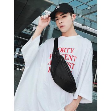 潮男街頭皮質小胸包胸前挎包時尚簡約單肩斜跨包新款男女士小腰包