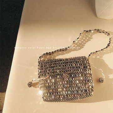 UGALS復古大牌金屬閃亮亮片包手工編織串珠珍珠包單肩斜挎腋下包