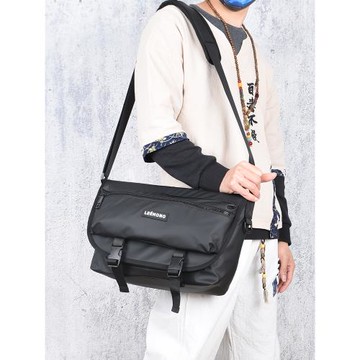 點我下載大容量書包單肩斜挎包男橫款韓版死飛機能潮牌背包女尼龍帆布方形
