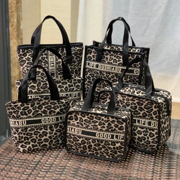 新款經典豹紋大容量化妝包洗漱包上班手拎飯盒袋零食包手提媽咪包