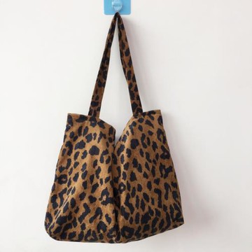 韓國新款豹紋托特包ins絨布手提大包購物袋慵懶風帆布包女單肩包