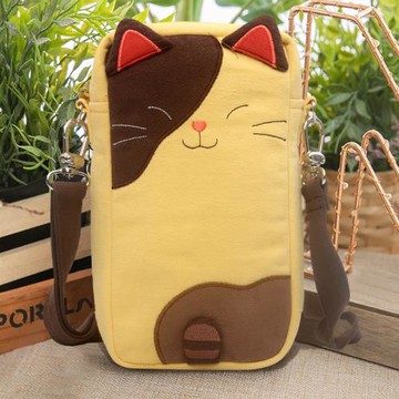 KINE貓 日系純棉可愛卡通橘貓休閑學生單肩手機包小斜挎布包女