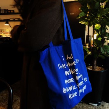 韓國ins同款ofmydraw克萊因藍帆布薄款單肩包簡約字母百搭購物袋
