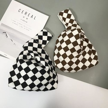 新品創意棋盤格日式手腕包手拎小包休閑百搭遛彎鑰匙手機小套結包