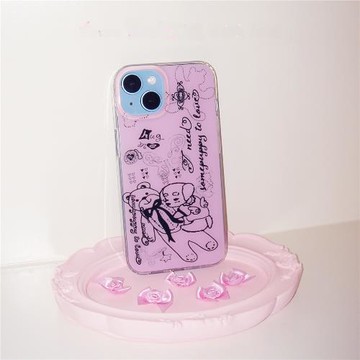 日韓彩繪小狗適用于蘋果12/13手機殼14/15promax新款iphone11磨砂半透明xs/xr防摔mini時尚8plus女7/6s保護套