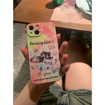 小粉喵喵屋x果汁沒有貓原創多巴胺涂鴉貓貓菲林殼軟殼iPhone15