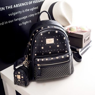 木子街鉚釘女時尚印花休閑雙肩包