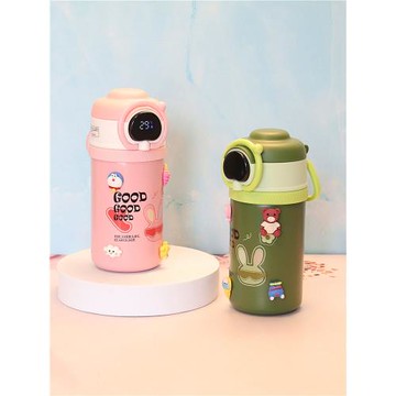 寶寶兒童帶吸管顯溫316不銹鋼保溫杯可愛高顏值小學生便攜水杯子