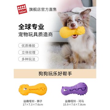 GiGwi貴為狗狗漏食自嗨啃玩具耐咬發聲中大型犬清潔牙齒益趣啞鈴