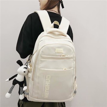 NR森系黑白百搭雙肩包女書包男背包女雙肩輕便電腦旅游雙肩背包