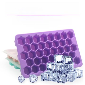 蜂窩造型矽膠製冰塊盒 帶蓋設計 食品級矽膠 柔軟盒體 37格大容量 20x12x2cm 20 x 12 x 2cm 綠色 3個