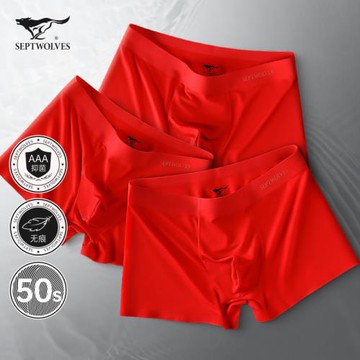 七匹狼男士內褲男生冰絲無痕平角褲本命年大紅色莫代爾四角短褲頭