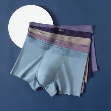 新款網紅男士莫代爾內褲雙面色零感無痕夏天短褲桑蠶絲裸感平角褲