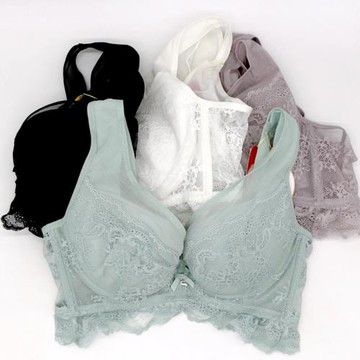 PinLe 法式性感蕾絲聚攏美胸薄款内衣 -B003白色