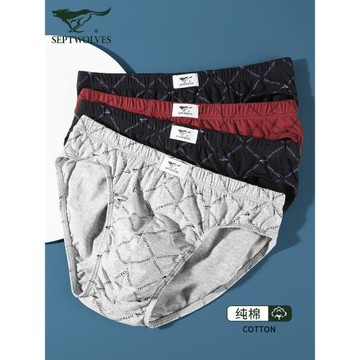 七匹狼男士三角內褲純棉印花寬松透氣性感男款底褲男生全棉短褲頭